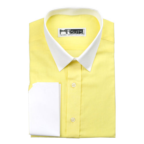 #v197 - Yellow Plain Linen Linen single ply dress shirts