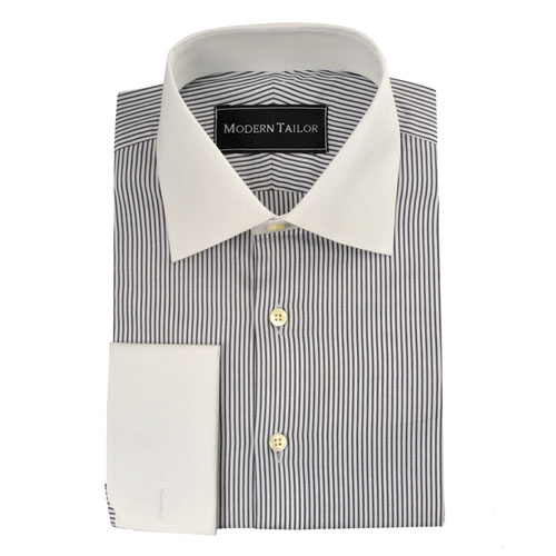 #o216 - Blue and White Stripes Pure cotton two ply dress shirts